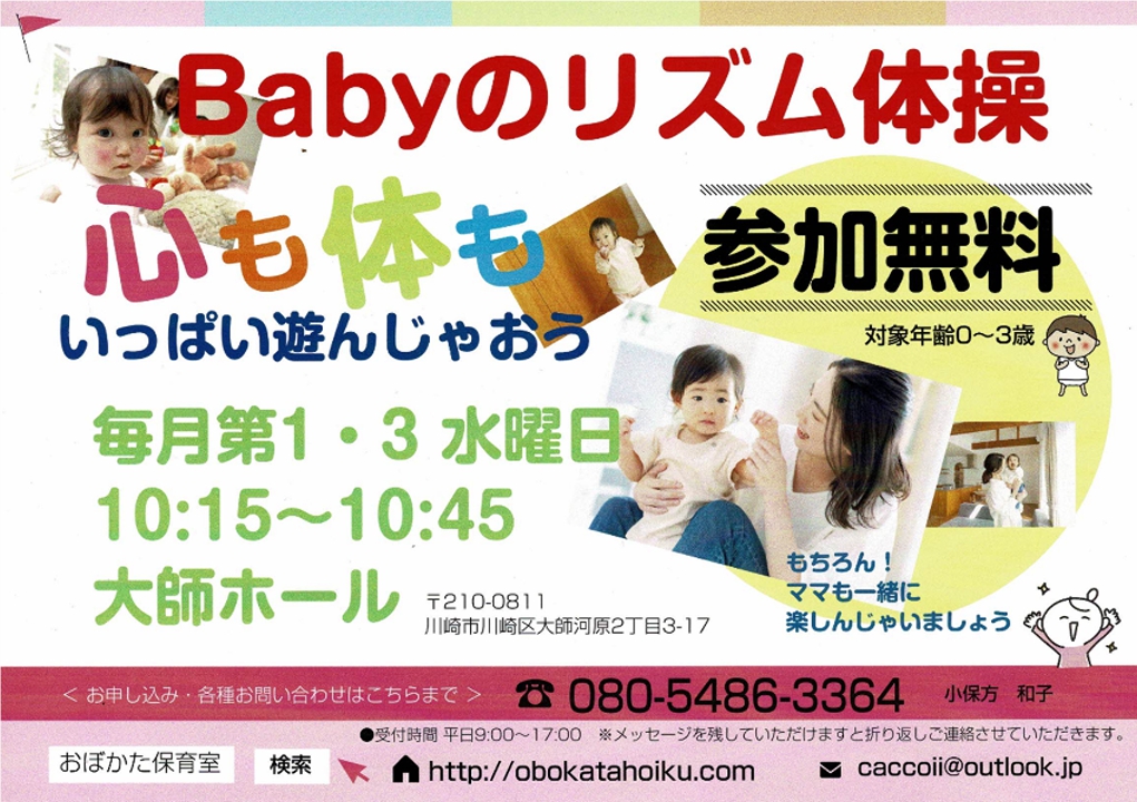 川崎市川崎区にある家庭的保育室のおぼかた保育室です。
